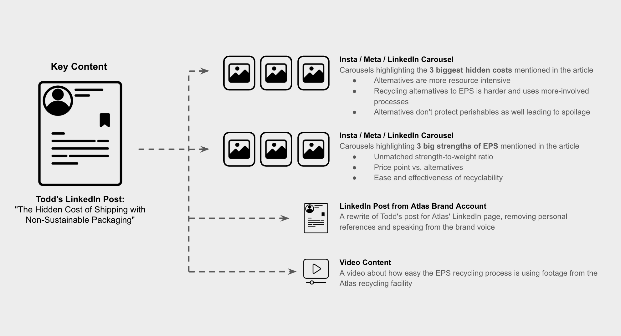 Here, I show how to derive many pieces of content from a single LinkedIn post from the CEO.