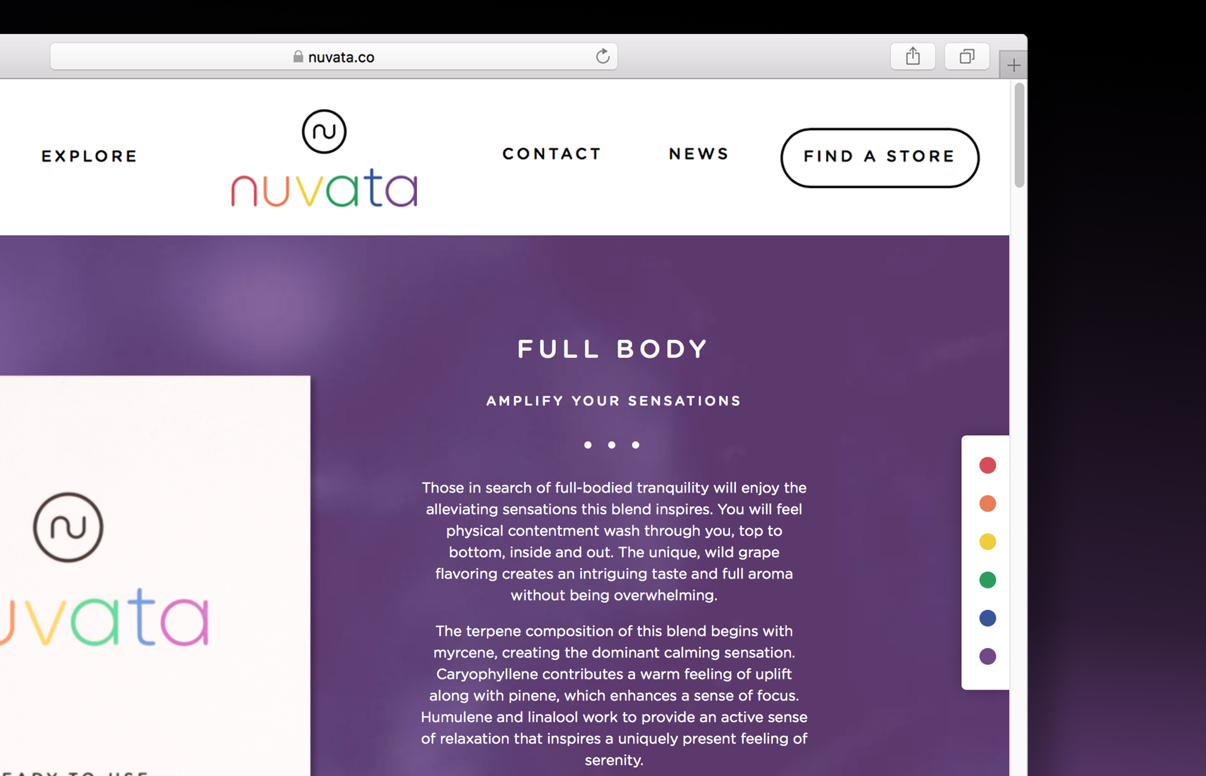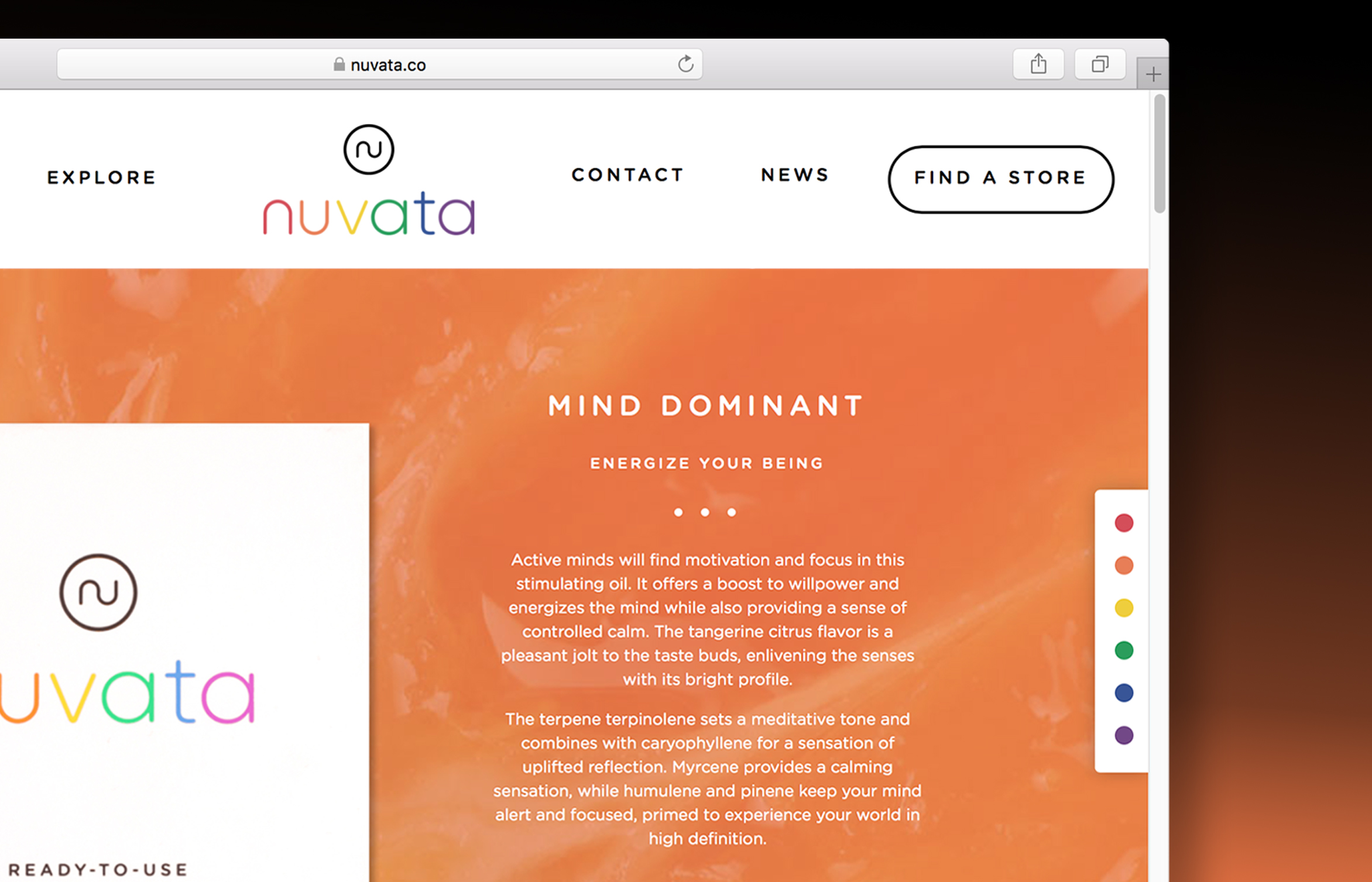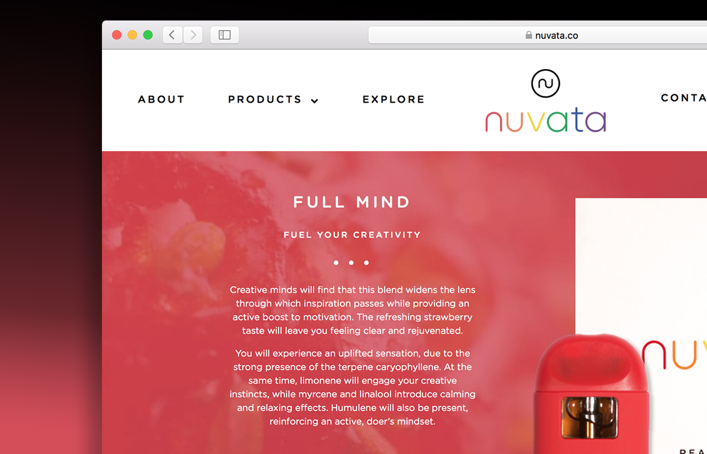 It was my task to bring this spectrum to life with highly-descriptive copy that communicated the unique sensation, flavor, and chemical makeup of each product. Given Nuvata’s moderately-high price point, I needed to paint a vivid picture of each product’s effect to convince customers that they were getting exactly what they wanted.