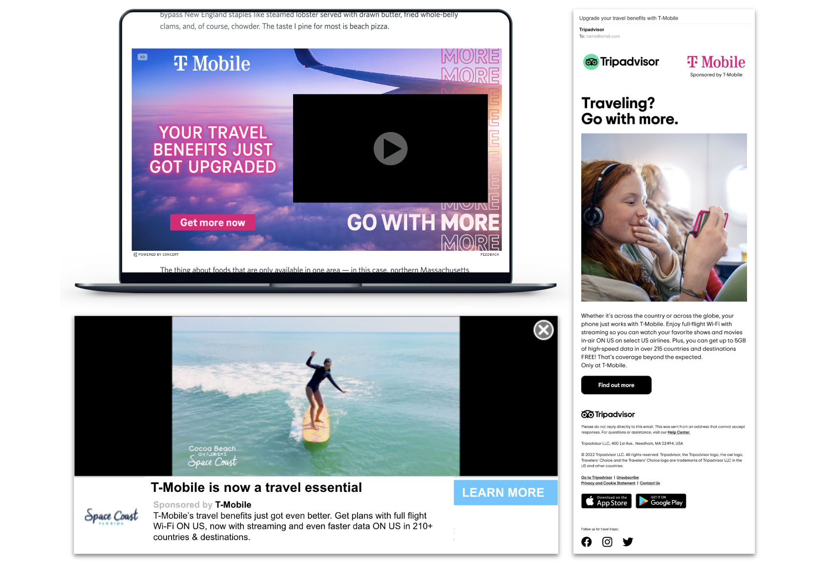 There was also a broader digital campaign aimed at a wider audience of travelers. It needed to tie in with T-Mobile’s brand-level messaging about giving customers “more” than the other carriers.